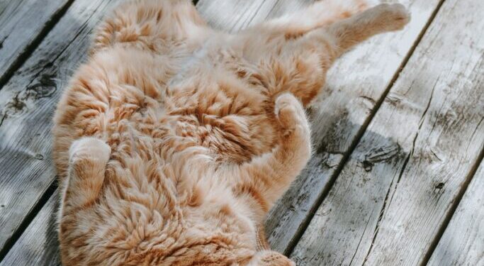 - Excessive licking: The cat obsessively cleans its abdominal area.