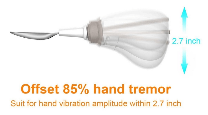 Il cucchiaio di GYENNO si stabilizza elettronicamente in modo che l’utensile collegato scuota 85% in meno della tua mano. Preoccupatevi meno della fuoriuscita e concentrarsi sul godere del vostro pasto